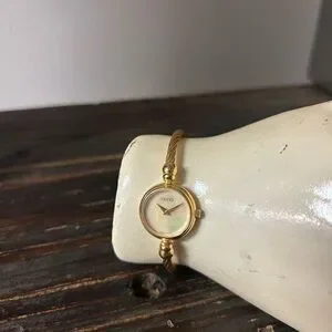 Gucci vintage women's watch wrap cable band with pearl face In working order!