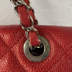 Authentic Chanel Red Medium Riviera Flap Quilted Leather Handbag in excellent condition. It’s clean inside out! It has one zip pocket inside. The corners are in great shape. This is my first Chanel bag!