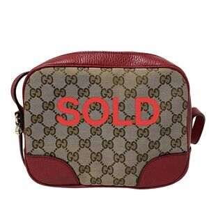 GUCCI Bree Beige Brown Red Jacquard Leather - Shoulder Bag 631-051525