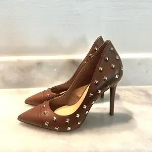 NWOT Michael Kors Pointed Toe Stiletto Heel Keke Studded Leather Slip-on Pumps Brown Size 7.5