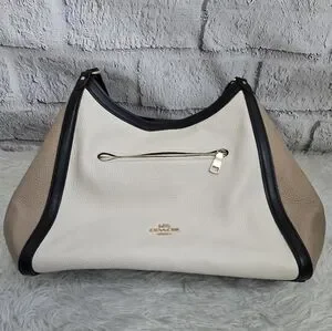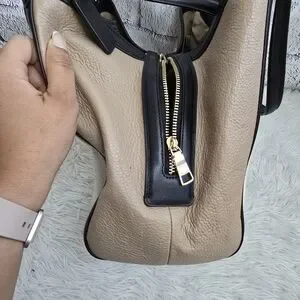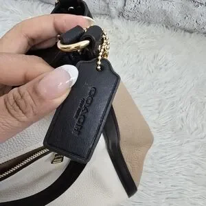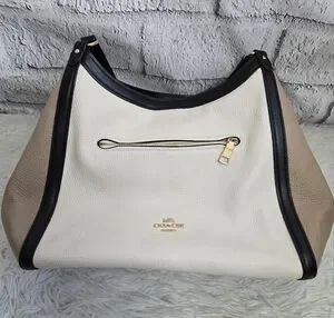 Elevate your style with this elegant Coach leather bag. Featuring a sophisticated cream and tan color combination, this bag is perfect for any occasion. The high-quality leather ensures durability and a luxurious feel.