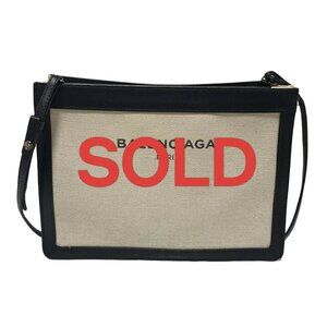 BALENCIAGA Navy Pochette Cream Black Canvas Leather - Shoulder Bag 354-052025