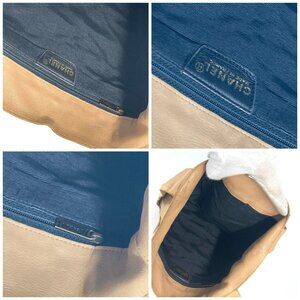 CHANEL vintage Chocolate bar Shoulder bag Tote Bag Shoulder Bag Leather Beige