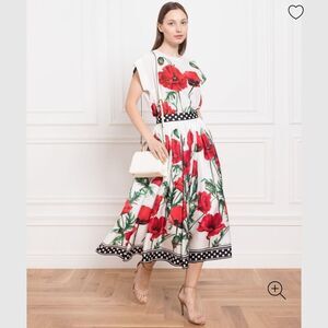 New Dolce& Gabbana Cap-Sleeve Poppy-Print Top Size IT 36 XS