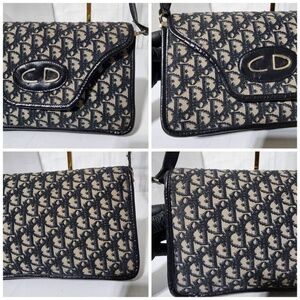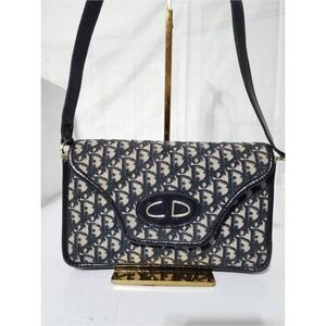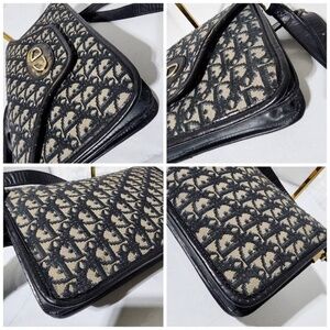 Authentic CHRISTIAN DIOR Vintage Trotter Jacquard Shoulder Bag Black/Beige
