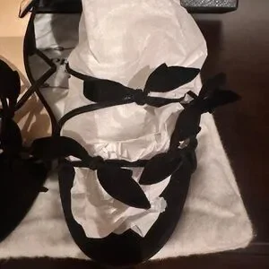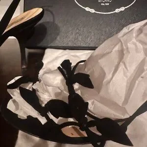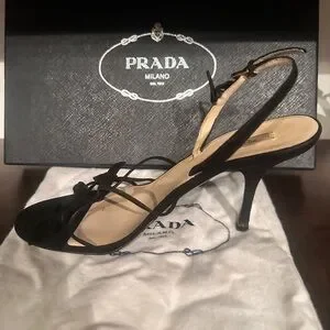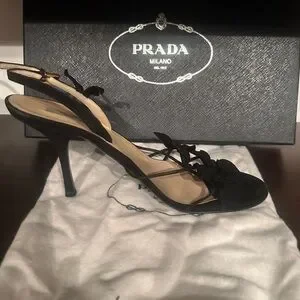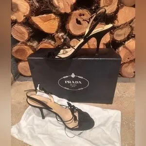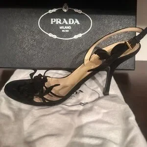 Prada Calzature Donna Camoscio Foglia Black Strappy Heels