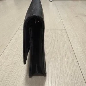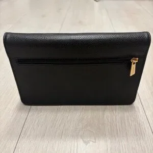 This small bag is in great condition. Has a few minor scratches on the soft leather on the inside. Can fit a phone lipstick keys and has pockets for cash and cards.