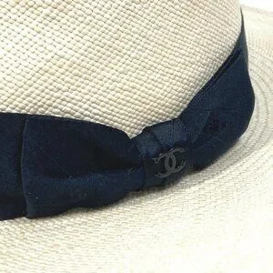 NAME: CHANEL CC CC Mark Grosgrain Ribbon 19V hat straw hat hat