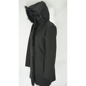 Prada Black Fur Trim Hooded Women's Trench Coat Size 40 EU 4 US New $2375 Italy