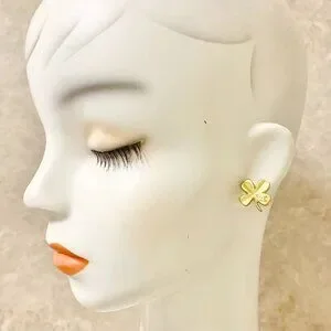 CHANEL CC Logos Clover Stud Earrings Gold Tone 03P Auth