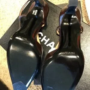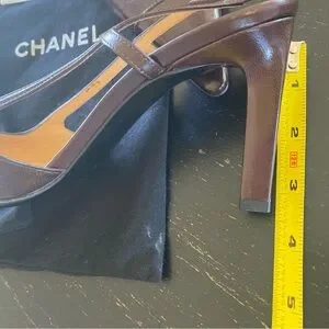 CHANEL Women's Dark Brown Leather Slingback Heels