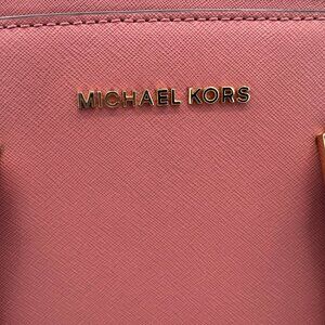 Tags: Michael Kors purse, blush handbag, pink satchel, structured tote, leather work bag, feminine everyday bag, MK Selma, two-tone pink bag, stylish office bag, classic designer purse