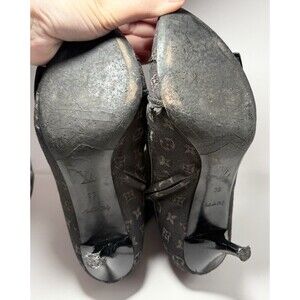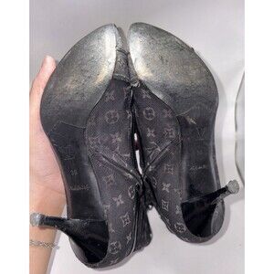 Louis Vuitton Black Canvas Monogram Boots Stiletto Heel Silver Buckle 36 6 Y2K