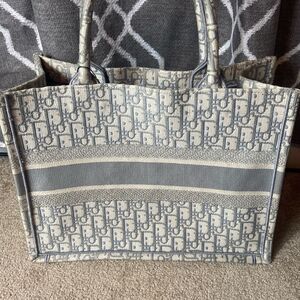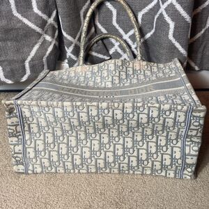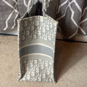 CHRISTIAN DIOR MEDIUM BOOK TOTE ECRU WHITE AND GRAY OBLIQUE EMBROIDED W/ COA