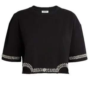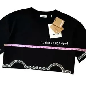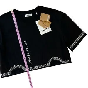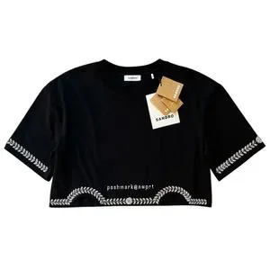 NWT ✨ SANDRO Rhinestone Tee T-Shirt Cropped Black 0 XS