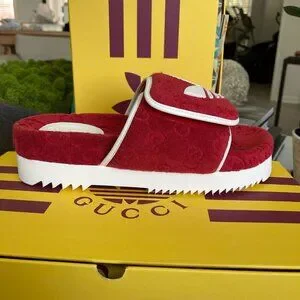Adidas x Gucci 702412 Mens Slides Sandals Shoe, Red, sz Gucci 9 & 10