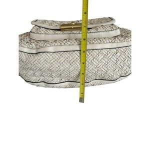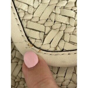 Coach Kristin Pinnacle Woven Leather Laila Large Satchel L1169-29341 Cream. Good pre-owned condition with normal wear, small spot on front pocket edge, lining has some small stains and ink marks, see photos for details. Measurements in photos and are approximate.