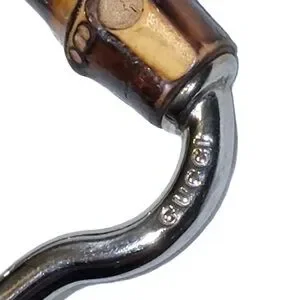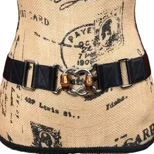 Authentic, hard to find, Gucci black elastic belt with leather, metal, and bamboo accents. Some tarnish to metal, but otherwise in excellent condition. Size 85/34.