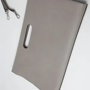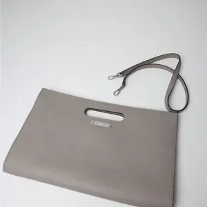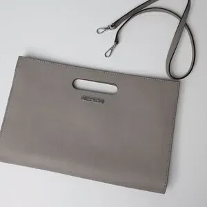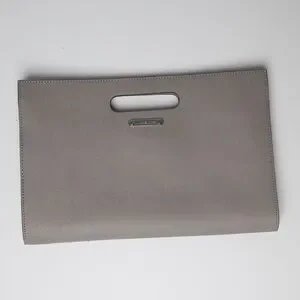 Large gray clutch with detachable wristlet. Sleek and stylish design. Perfect for any occasion. Never used, brand new condition. Extra strap included. It is about 13 x 8 inches. It has a magnetic snap closure. It was officially called the Tilda extra large clutch in grey soffiano leather.