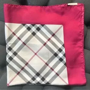 Chic Burberry scarf with bold Red and black stripes. Adds sophistication to any look. 100% Silk.