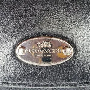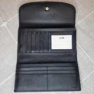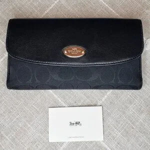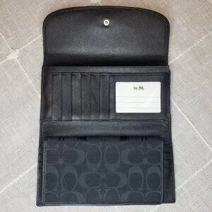 Authentic Coach Slim Trifold Wallet - Charcoal Signature Canvas and Black Leather