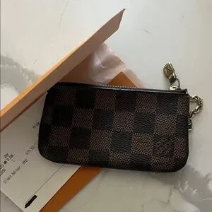 Authentic Louis Vuitton Brown Key Pouch with Gold Clip