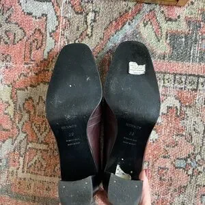 Step out in style with these elegant burgundy Hermès leather shoes. Perfect for any occasion, these shoes offer both comfort and sophistication.