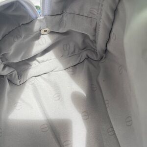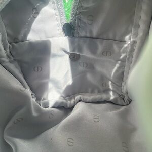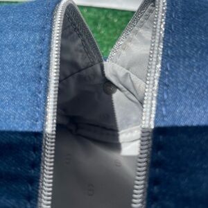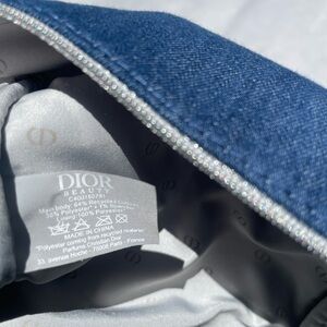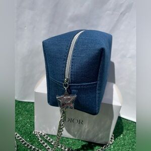 Elegant Dior cosnetic bag made into a crossbody bag in blue. Features a stylish chain strap and signature logo.