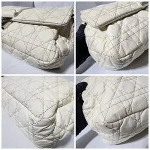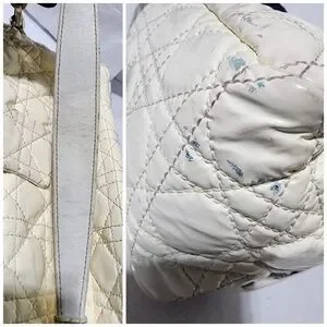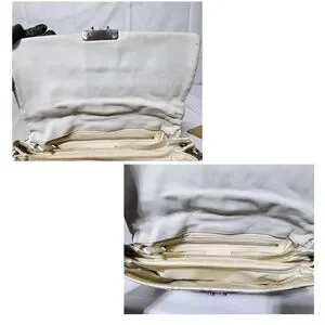 This authentic CHRISTIAN DIOR Lambskin Patent Cannage New Lock Flap Shoulder Bag Cream is in it’s pre-owned condition. The exterior patent leather shows sign of some stains to it, also the flap. One corner of the edges shows some sign of stain to it. The handle shows sign of rubbing wear to it. The interior is clean. One of the compartment shows little sign of stain. Silver hardware shows scratches to it. Kindly look at pictures above for all details.