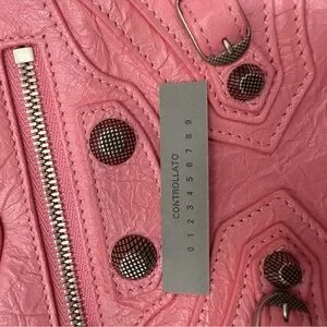 Excellent condition. Elegant pink crossbody bag by Balenciaga. Features a sleek chain strap and unique design elements. No box or dustbag