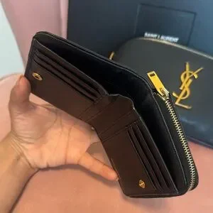 Stylish and functional for everyday use beautiful YSL wallet. The button on the wallet closes BUT the snap isnât as strong! Priced to sell đ¤