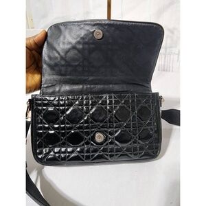 This authentic Christian Dior Cannage Lady Dior wallet on chain Black is in its pre-owned condition. The exterior shows sign of greasing wear to the patent leather. The interior is clean. This bag does not come with the original chain strap. A generic leather strap was included to the strap ring. Kindly look at pictures above and take note of the dotted wear on this bag and some scuffing to the patent leather flap.