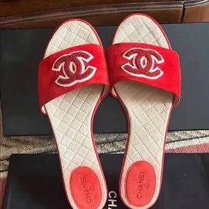 Channel orange suede slide sandals ,size 39.5.