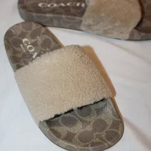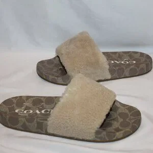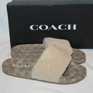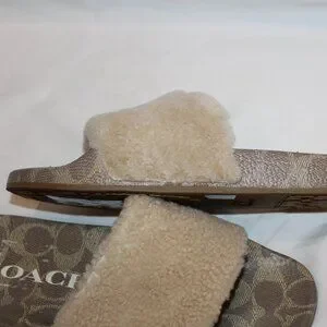 NIB COACH WOMEN'S ULLA SHEARLING LOGO SLIDE IVORY SIGNATURE SZ 7