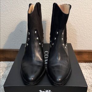 Elegant Coach ankle boots with signature tan monogram pattern. Ideal for versatile styling. Only worn a couple of times. Great condition. Comes with coach shoe box, but not original box.