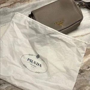 Chic Prada crossbody in rich brown leather. Features gold-tone logo. Ideal for versatile styling.