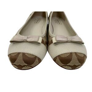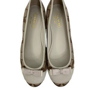 Coach Womens Cindie Flats Bow Beige & Brown 6M Y10664 Monogram Y10664 EUC