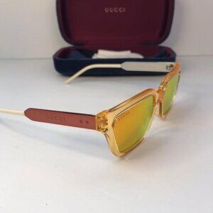 💯 - New Authentic Gucci Orange Mirror Rectangular Men's Sunglasses GG0975S …