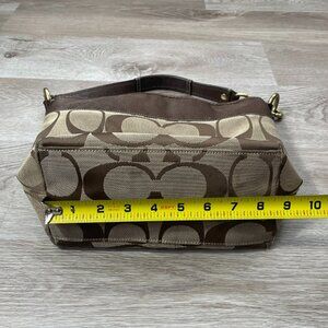 Coach Y2K Brown Canvas Jacquard Shoulder Bag Used - Pre-owned Has all over soiling from normal wear Has some fraying in one of the corners - see picture Will need cleaning Coach Vintage Signature C Monogram Logo Print Black Jacquard Mini Hobo Bag Y2K
