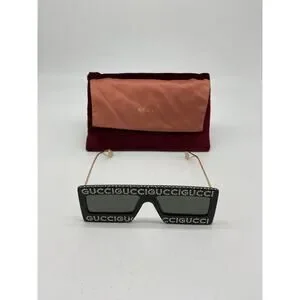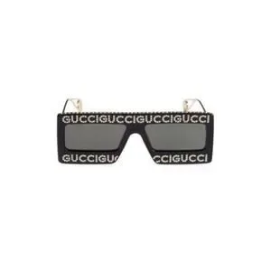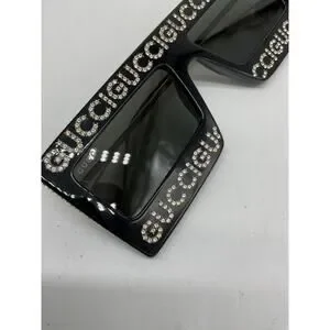 Gucci 60mm Black Acetate & Metal Embellished Rectangular Sunglasses Size OS: uv protection, logo at temples and lens corner, crystal-embellished, oversized rectangular sunglasses, frame acetate & metal, small scratch on the frame.