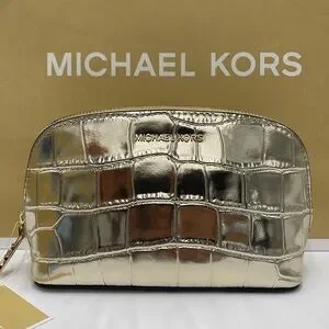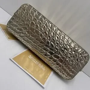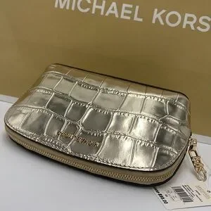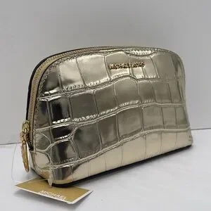 Michael Kors Empire Small Metallic Crocodile Embossed Leather Travel Pouch NWT