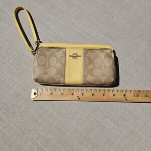Coach Signature Yellow and Tan Zip around Wallet 2 zippers Wrist Strap