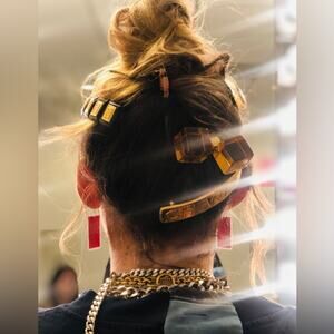 Authentic Vintage Louis Vuitton Red Lucite Jumbo Hair Cube with Rhinestone Logo.