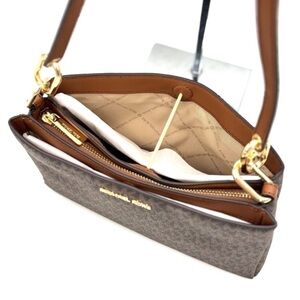 Michael Kors Trisha Medium Triple Compartment Crossbody Bag Brown Signature