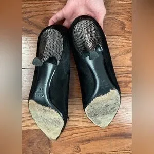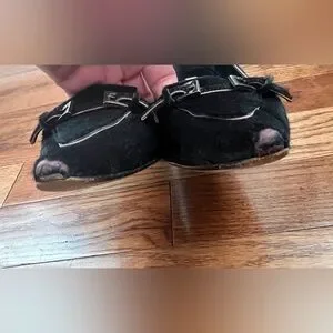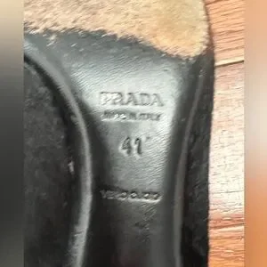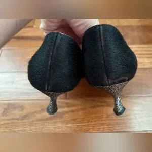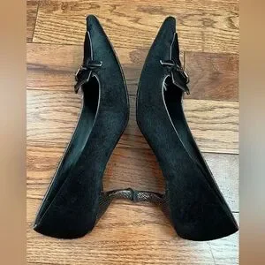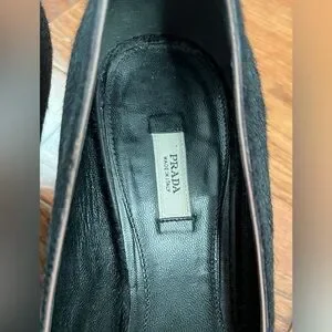 PRADA - Glossy Black Buckle Pointed Toe Pony Hair Low Heel Pumps Sz 41 US 11