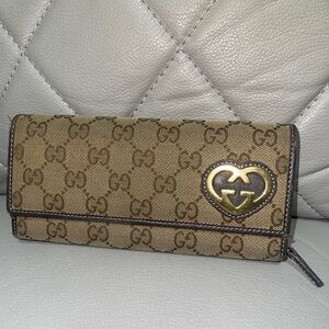 Gucci Brown Monogram Wallet with Gold Heart Logo