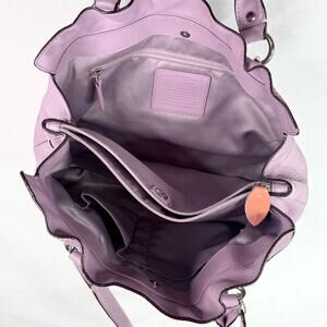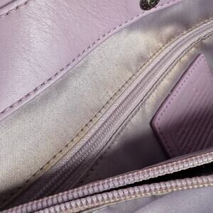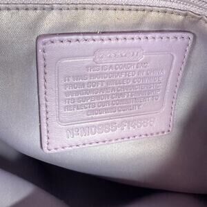 Coach Penelope lilac/lavender purple shoulder bag with silver hardware and tan tag and zipper accents. Has some yellowing on the lining around the edges and zipper (see photos) but is otherwise in great condition!