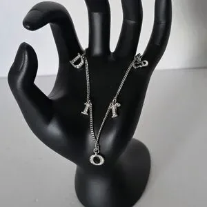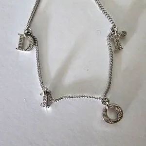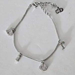 CHRISTIAN DIOR Women's Rhinestone Charm Adjustable Chain Silver Metal Bracelet