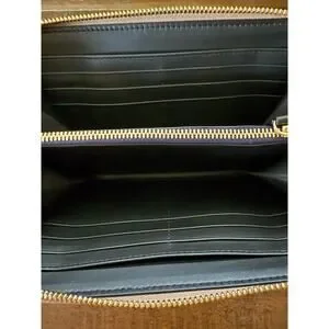 Gold-tone zipper closure with leather pull