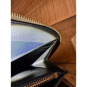Burberry Wallet Women's Large Zip Around Dark Canvas Blue Check Leather